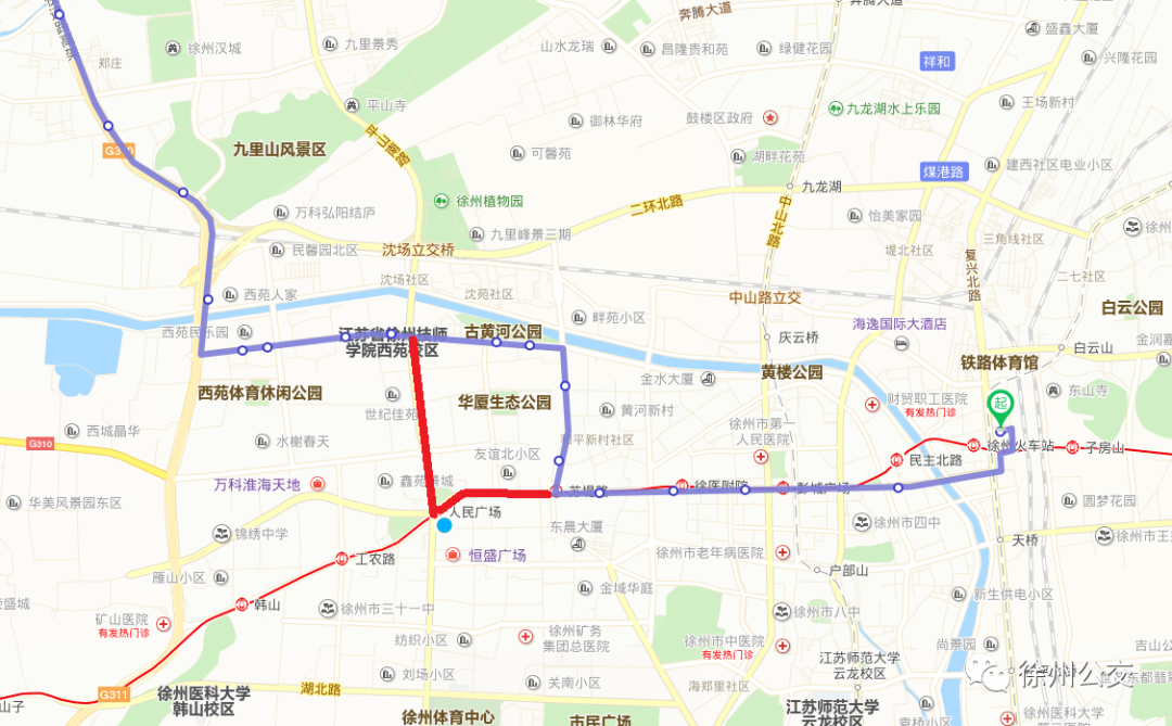 5、616路:由徐礦城東發(fā)車后,行駛至蘇堤北路與黃河南路交叉口后左轉(zhuǎn)進(jìn)入黃河南路,經(jīng)黃河南路、西安北路,恢復(fù)原線路。