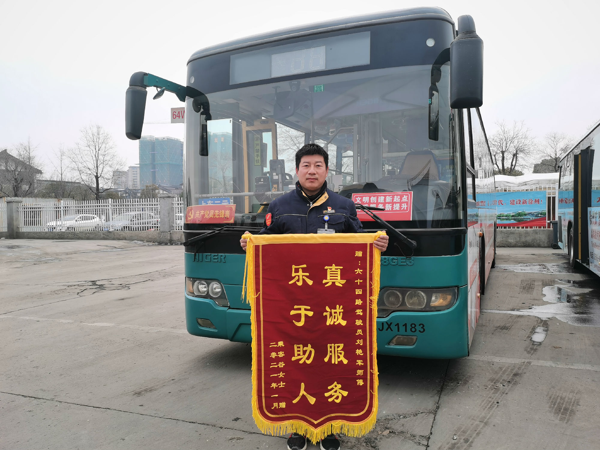 原來(lái),2020年12月24日傍晚,老人在淮塔北門公交站候車時(shí),由于天氣嚴(yán)寒加之著急趕車,老人血壓升高,不慎跌倒在站臺(tái),無(wú)法起身。就在此時(shí),劉艷軍駕駛64路1183號(hào)公交車駛?cè)胝九_(tái),發(fā)現(xiàn)老人跌倒,劉艷軍立即將車安全停好,與乘客解釋后立即跑下車,小心翼翼地將老人扶起,幫老人拍打身上的灰塵,細(xì)心地詢問(wèn)老人身體狀況,確定老人沒(méi)事后,劉艷軍懸著的心才放下。在得知老人想乘坐64路公交車后,劉艷軍又慢慢地將老人扶上了車,給老人安排好座位后,劉艷軍再次確定老人身體無(wú)恙后,才安心駕車?yán)^續(xù)前行,車上乘客紛紛投來(lái)贊許的目光。