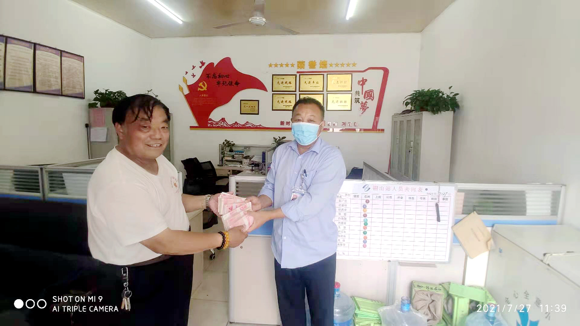 長(zhǎng)在調(diào)取車輛監(jiān)控錄像后發(fā)現(xiàn),遺失布包的乘客從張集上車,在汽車南站下車時(shí)將紅色布包忘在了車上。就在耿站長(zhǎng)準(zhǔn)備撥打110報(bào)警電話求助時(shí),一男子急匆匆地來到辦公室,稱他的包遺忘在83路公交車上,里面有好多現(xiàn)金,請(qǐng)車站工作人員幫忙查一下。在通過監(jiān)控比對(duì)、身份證驗(yàn)證及失主敘述后,耿長(zhǎng)拿出色布包請(qǐng)張先生確認(rèn),張先生非常激動(dòng),連聲道謝,稱贊公交駕駛員拾金不昧的精神。