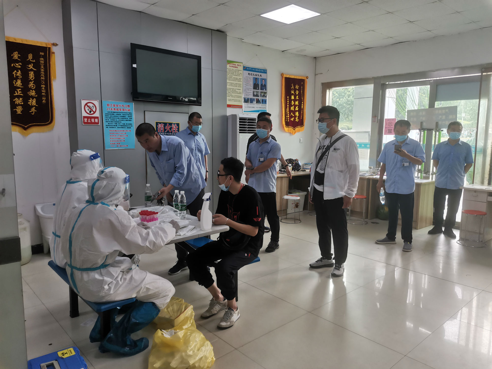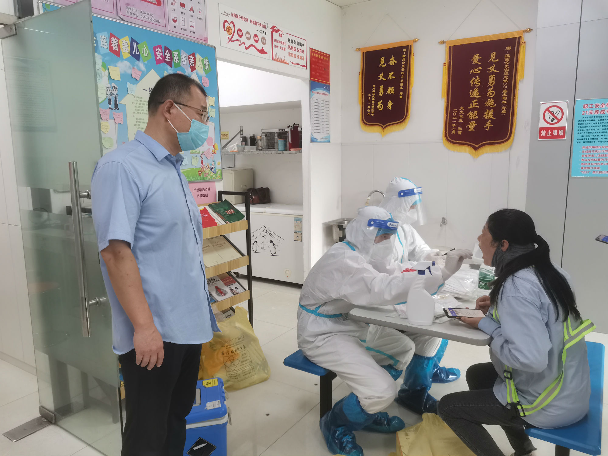 核酸檢測期間,新巴士公司各級(jí)管理人員做好后勤保障工作,經(jīng)過亮碼認(rèn)證、衛(wèi)生消毒、信息核對(duì)等程序后,職工才被獲準(zhǔn)進(jìn)入核酸采集室。同時(shí),公司將空間較大的淮西客運(yùn)站調(diào)度室作為采集點(diǎn),并安排專職人員維持現(xiàn)場秩序。