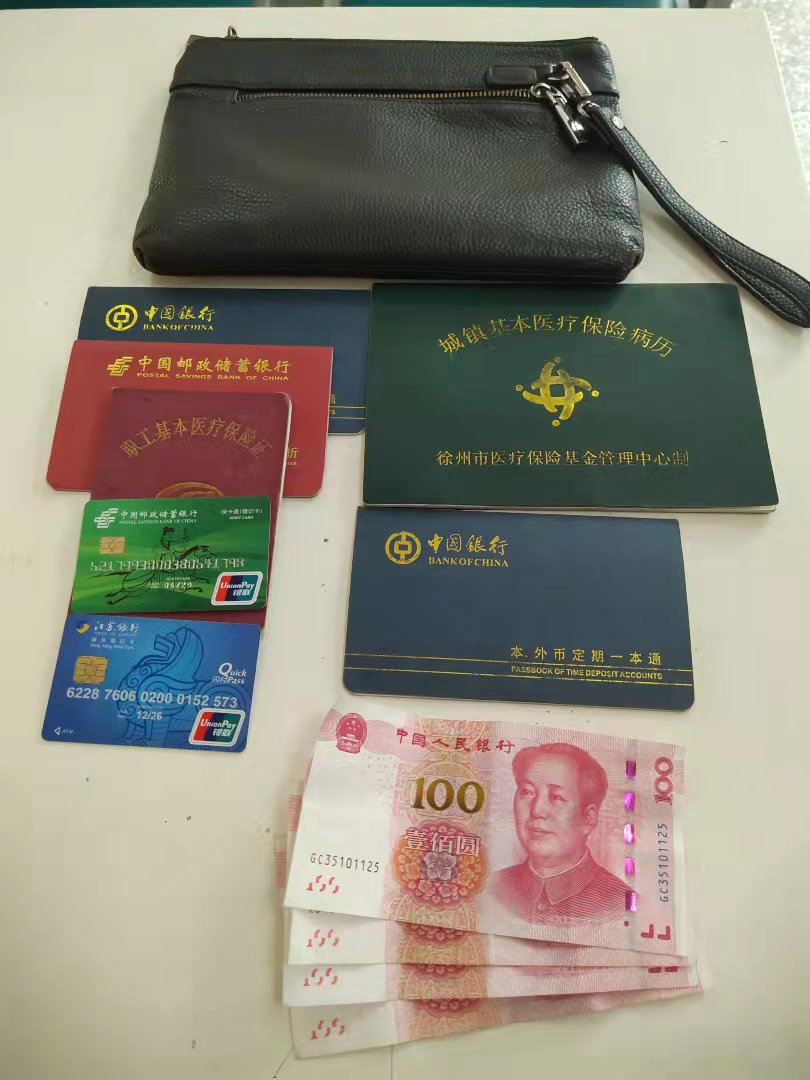 駕駛員劉連成駕車到達(dá)火車站副廣場(chǎng)后,在對(duì)車輛進(jìn)行清掃、消殺時(shí),發(fā)現(xiàn)了侯先生遺落在車上的包,包內(nèi)有銀行卡、存折、醫(yī)保本、病例等證件和部分現(xiàn)金。劉連成想到失主丟了東西肯定著急,于是第一時(shí)間向車隊(duì)匯報(bào),并將包交到車隊(duì)調(diào)度室。