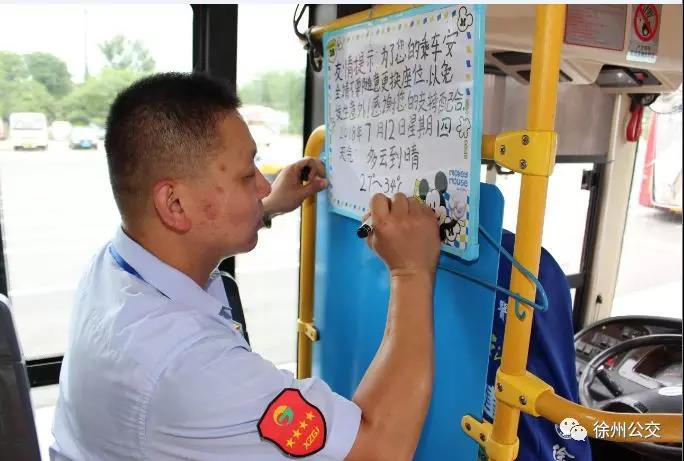 原來(lái)他已養(yǎng)成了習(xí)慣,在他的駕駛室后方掛著一塊白板,寫(xiě)著乘車(chē)的溫馨提示語(yǔ)和天氣情況。每天他都會(huì)記錄下當(dāng)天的天氣情況:“為了您的乘車(chē)安全,請(qǐng)不要隨意更換座位。感謝您的支持!2018年7月12日星期四,多云到晴,27~34攝氏度”,“特別是老年人、孩子,開(kāi)車(chē)時(shí)換位子太危險(xiǎn)了?!毖λ山忉尩馈?/span>